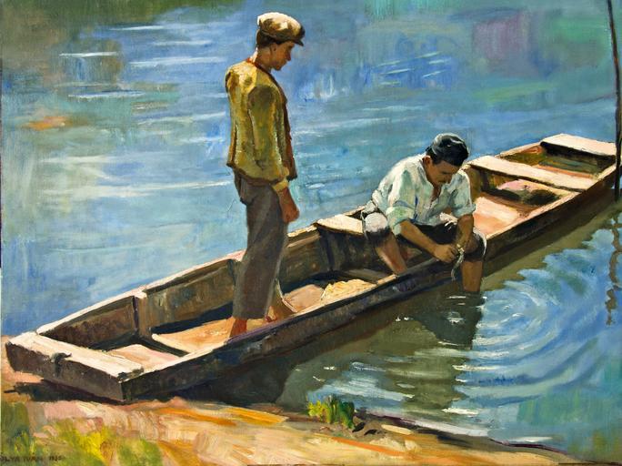 Keywords: Pólya Fishermen of the Tisza 1935.jpg Artwork Creator Iván Pólya 1935 Oil on canvas Size cm 100 76 Private collection object history credit line Signed Polya Iván 1935 accession number http //www biksady com Biksady Galéria és Aukciósház http //www biksady com/lot_more php more ok tid 1270 page id 3 lang english Info http //www biksady com/auction/3/big/500018 jpg Pic PD-old-70 Iván Pólya Tisza in art Fishing in Hungary 1935 paintings in Hungary Fishermen in art |