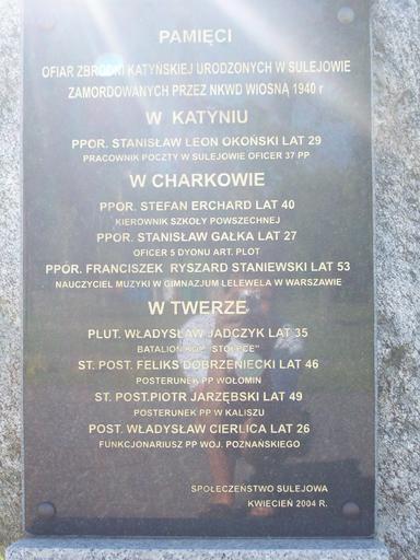 Keywords: Pomnik (05) by Ron.jpg pl Napis na tablicy pomnika ofiar NKWD own Ron whisky 01-06-2008 Monuments and memorials in Sulejów Plaques in Sulejów