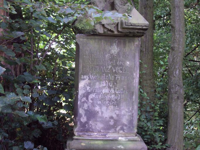 Keywords: Pomník Franz Vocel.jpg cs Pomník Franze Vosela ve stráni nad vsí 100 metrů od hřbitova Velenice own Zákupák 2010-08-22 Velenice Česká Lípa District Plaques in Česká Lípa District