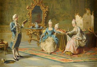Keywords: Pompeo Massani Ein interressanter Verehrer.jpg Ein interressanter Verehrer oil on canvas 45 x 66 cm http //www duesseldorfer-auktionshaus de/ Düsseldorfer Auktionshaus by 1920 Firenze signature/place lower right Pompeo Massani 1850 “1920 PD-old-auto-1923 1920 18th-century way of life Images from Düsseldorfer Auktionshaus Pompeo Massani Rococo revival paintings Reading to others Interiors of palaces in art |