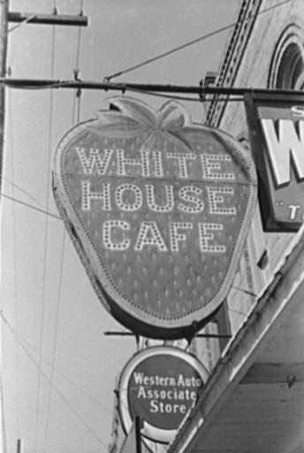 | Keywords: PonchatoulaWhiteHouseCafeSign1939.jpg Symbol of the strawberry country Ponchatoula Louisiana Sign on cafe 1939 Photo by Russell Lee for the Farm Security Administration; transfered to Office of War Information Photograph Collection and then to Library of Congress; downloaded via http //hdl loc gov/loc pnp/fsa 8a26011 1939-04 Creator Russell Lee PD-USGov 1939 in Louisiana Restaurant signs in Louisiana Ponchatoula Louisiana Cafés in Louisiana Strawberries in art Russell Lee | ||||