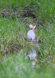 Keywords: pond animals birds grey heron frog meal