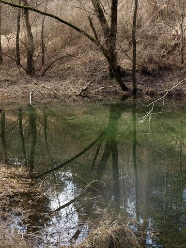 Keywords: pond trees mirroring water winter nature scenic