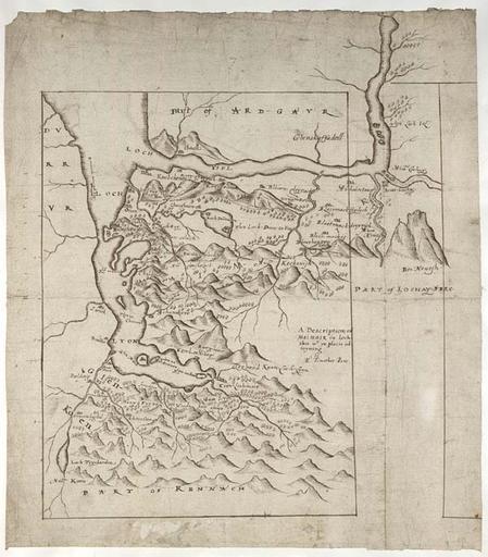 | Keywords: map timothy pont timothypont manuscript scotland glen coe glencoe glen nevis glennevis highlands loch eil locheil loch leven lochleven ben nevis bennevis loch lyon lochlyon nls sketch drawing text writing monochrome texture photo border This map focuses on the area between Glen Coe and Glen Nevis in the western Highlands. It shows part of the Ardgour peninsula to the west west (top) and Rannoch Moor to the southeast (bottom). The north coast of Loch Lyon (Loch Leven) is well depicted. Scotland's highest mountain, the 4406ft (1343m) high Ben Nevis (Bin Neuesh), is clearly drawn in profile (top right). More .... This map focuses on the area between Glen Coe and Glen Nevis in the western Highlands. It shows part of the Ardgour peninsula to the west west (top) and Rannoch Moor to the southeast (bottom). The north coast of Loch Lyon (Loch Leven) is well depicted. Scotland's highest mountain, the 4406ft (1343m) high Ben Nevis (Bin Neuesh), is clearly drawn in profile (top right). More .... |