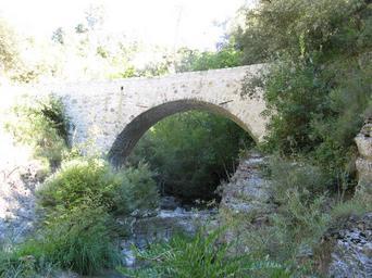 Keywords: Pont romain de Virounours Commune de Peille (vue de dessous).JPG Pont romain au dessus du ruisseau de Gazouil situé dans le hameau de Virounours sur la commune de Peille 2014-08-12 16 35 12 own Copyleft cc-zero Uploaded with UploadWizard Peille Ancient Roman bridges in France |