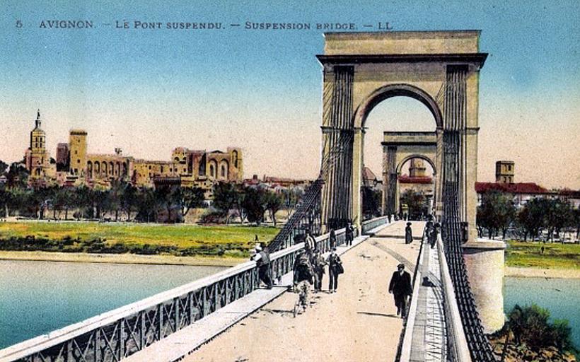 Keywords: Pont suspendu CP colorisée.jpg fr Pont suspendu d'Avignon au dessus du Rhône 2011-08-01 Scan old postcard early XXe s LL PD-old Uploaded with UploadWizard Bridges over the Rhône River Bridges in Vaucluse Old postcard of Rhône in Avignon