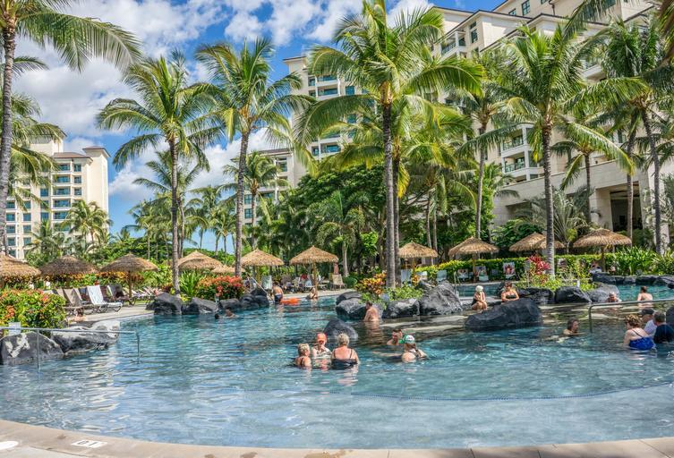Keywords: pool resort tropical palm trees sky clouds summer water vacation blue swimming swimming pool travel people summer vacation leisure fun person summer fun rocks garden outdoors