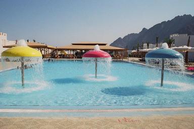 Keywords: pool swimming pool holiday travel summer luxury luxurious elegant resort tourism turquoise water colorful mushrooms screens fountain yellow red blue refreshment scan