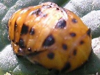 Keywords: Pop op blad.jpg Ladybird pupa possibly Seven-spotted lady beetle Coccinella septempunctata <br>Location Hengelo Overijssel Netherlands <br>Keywords <br>--- <br>nl Pop van Lieveheersbeestje mogelijk van Zevenstippelig lieveheersbeestje Coccinella septempunctata <br>Locatie Hengelo Ov <br>Trefwoorden <br>--- <br>de Puppe möglich des Siebenpunkt-Marienkäfers <br>--- Own 2006-06- Pudding4brains Public Domain PD P4bLHB Coccinellidae of Twente Coccinella septempunctata pupa |