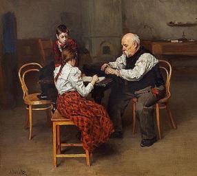 Keywords: Popov 010.jpg Artwork Creator Lucian Popov en Grandfather helping the grandchildren with their homework < 1914 Oil on canvas cm 40 0 45 0 Private collection object history credit line accession number http //www artfact com/auction-lot/lukian-vassilievich-popov -grandfather-helping-th-1tdjtzgfee-1-m-428c690914 PD-old-100 Lucian Popov |
