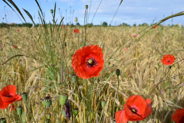 Keywords: poppy cornfield nature red summer klatschmohn cereals spike flower agriculture