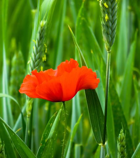 Keywords: poppy flower blossom bloom red red poppy wheat cereals field close nature ear poppy flower