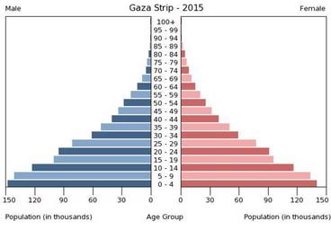 Keywords: Population pyramid of Gaza Strip 2015.png en A population pyramid illustrates the age and sex structure of population and may provide insights about political and social stability as well as economic development The population is distributed along the horizontal axis with males shown on the left and females on the right The male and female populations are broken down into 5-year age groups represented as horizontal bars along the vertical axis with the youngest age groups at the bottom and the oldest at the top The shape of the population pyramid gradually evolves over time based on fertility mortality and international migration trends Віково-статева пі аміда населення Секто у Газа за 2015 ік Вона дає наочне уявлення п о вікову і статеву ст укту а населення к аїни може слугувати дже елом інфо мації п о політичну і соціальну стабільність економічний озвиток Блакитними кольо ами ліво уч у вигляді го изонтальних смуг показані вікові г упи по 5 оків кожна чоловічої статі п аво уч ожевими жіночої аймолодші вікові г упи внизу найста іші вго і Фо ма пі аміди поступово еволюціонує з плином часу під впливом чинників на оджуваності сме тності і світової міг ації https //www cia gov/library/publications/the-world-factbook/ The World Factbook 2016-09-21 The Central Intelligence Agency Цент альне озвідувальне уп авління PD-USGov Population pyramids of Palestine |