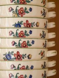 Keywords: porcelain bowl henkel cup rose ornament red white paint painting imprint stack tableware