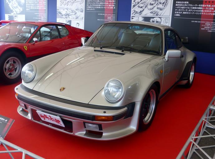 Keywords: Porsche 930 Turbo ver.wolf of circuit.JPG ja サーキットの狼 仕様の ルシェ・930ター を撮影 2014-08-30 08 38 52 own Tokumeigakarinoaoshima cc-zero Uploaded with UploadWizard Circuit no Ōkami Exhibition 2014 Suzuka 1000km Porsche 930 coupes Silver coupes