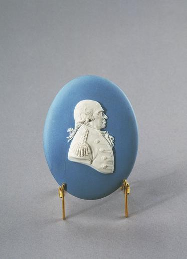 Keywords: Porslin. Medaljong. Vit figur mot blå bakgrund. 1700-talets slut - Hallwylska museet - 89089.tif Stående oval med rundad kant och svagt konvex framsida på denna en bröstbild i profil åt höger i pålagd vit relief Bilden föreställande Richard Howe f 8 mars 1726 d 5 augusti 1799 earl och viscount engelsk amiral ; hjässan kal håret vid öronen lockigt nackhåret långt och omknutet med ett band; ögonbrynen buskiga käkpartiet kraftigt utvecklat; halsduken framtill med ett bröstkrås; uniformsrocken med uppåtstående låg krage kring denna rockens framkant samt knapparna galoner; epåletter med tre stjärnor samt fransar bullioner original caption Porslin Medaljong Vit figur mot blå bakgrund 1700-talets slut <br/> Nyckelord Amiral Howe Engelsk Blått Profil Uniform Man Porträtt Porslin Föremålsbild end other date century 18 size cm 8 7 11 5 HWY place of origin Etruria Staffordshire England original filename hm_dig1969 17678 inventory number HWY XLV II B a b d 01 89089 CC-BY-SA Samuel Uhrdin Samuel Uhrdin Wedgwood pottery in the Hallwylska museet Wedgwood pottery in the Hallwylska museet Media contributed by LSH unmatched keyword Media contributed by LSH 2013-10 |
