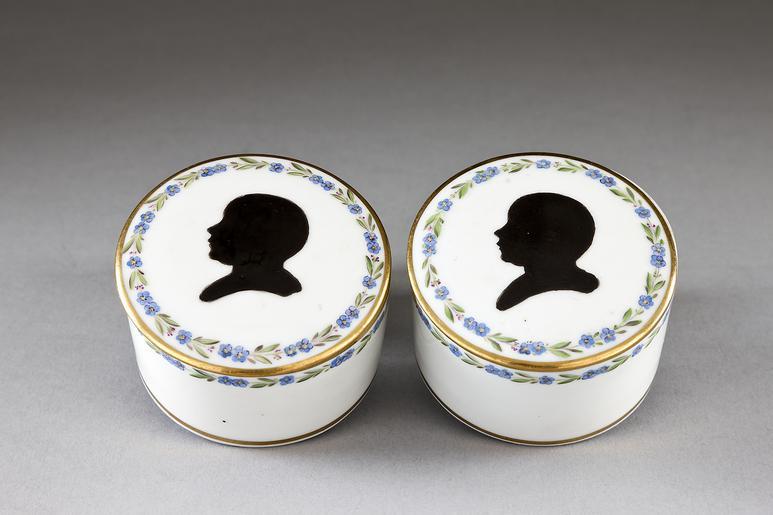 Keywords: Porslinsaskar med silhuetter, gjorda cirka 1790-1805 - Hallwylska museet - 93866.tif LSH artwork sv Cylinderformiga askar med insänkt botten Dekor av förgätmigejbårder i naturliga färger på glasyren Lågt kupigt lock något utskjutande över askens mynning samt med sarg <br/>Fabriken grundlagd 1757 av Wilhelm Teodor von Rothberg Såldes senare till August von Gotha 1802 som 1813 sålde fabriken vidare till Egidius Hemmeberg <br/>Pris 8 Mk Se hushållsbok Betalda 4 maj 1898 original caption Porslinsaskar med silhuetter gjorda cirka 1790-1805 <br/> Nyckelord Silhuett Europa Ask Askar Föremålsbild Profil Thuringen ca other date - 1790 1805 size cm 0 7 lock size cm 3 size cm 5 2 size cm 5 3 lock HWY place of origin Gotha Thüringen DE original filename hm_dig3925 17873 inventory number HWY XLVII XII H a 01 93866 CC-BY-SA Jens Mohr Porcelain boxes Porcelain of Thuringia People in profile in art Porcelain in the Hallwyl museum Jens Mohr Media contributed by LSH dim-with multiple size templates Media contributed by LSH unmatched keyword Media contributed by LSH unmatched objKeyword Media contributed by LSH 2014-11 |