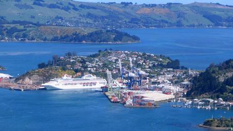 Keywords: Port Chalmers Dawn Princess.jpg Dawn Princess cruise ship berthed at Port Chalmers Dunedin New Zealand Looking southwest down Otago Harbour from Heyward Point Road Grassy Point Macandrew Bay Otago Peninsula visible in the top Own Benchill 2008-10-22 -45 779556 170 655098 Port Chalmers Dawn Princess ship 1997 Otago Harbour Otago Peninsula Port Otago Port cranes in New Zealand |