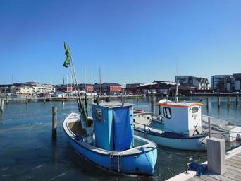 Keywords: port marina harbor fishing boats fishing blue white sunshine water atmosphere blue sky