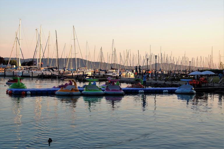 Keywords: port marina yacht sailing boat evening lake balaton sunset elektroloďky