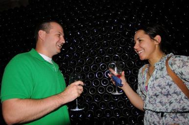 MAKE A MEME View Large Image Port visit to Palma de Mallorca 120703-N-NB538-189.jpg en Information Systems Technician 2nd Class Timothy McCallum and Yeoman 2nd Class Amber Benson taste wine at a Morale Recreation and Welfare sponsored winery tour during a scheduled ...