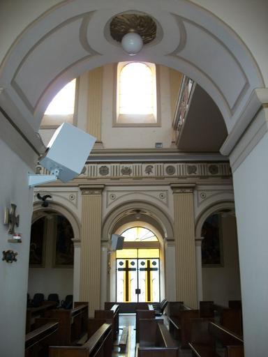 Keywords: Porta lateral - Matriz simonense.jpg pt Vista da porta lateral direita da matriz São Simão Apóstolo em S Simão SP tendo por ângunlo a arcada esquerda Fevereiro de 2010 own RStaparo Matriz de São Simão - SP Doors
