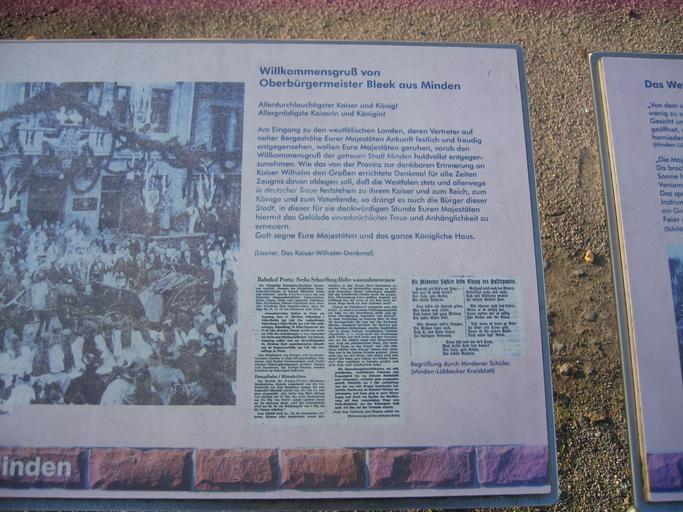 | Keywords: Porta Westfalica, 2009-Nov 084.jpg Tafel am Kaiser-Wilhelm-Denkmal an der Porta Westfalica auf dem Wittekindsberg und über dem Weserdurchbruch žPorta Westfalica bei der gleichnamigen Stadt Porta Westfalica Kreis Minden-Lübbecke Nordrhein-Westfalen Sign at Wilhelm I monument near Porta Westfalica District of Minden-Lübbecke North Rhine-Westphalia Germany Information au mémorial pour Guillaume Ier d'Allemagne près de Porta Westfalica arrondissement de Minden-Lübbecke Rhénanie-du-Nord-Westphalie Allemagne TUBS/Translation own IXUS 500 2009-11-20 TUBS 52 14 42 88 N 8 54 22 13 E region DE_heading W TUBS GFDL cc-by-3 0 2 5 2 0 1 0 cc-by-sa-3 0 2 5 2 0 1 0 TUBS/Credits Kaiser-Wilhelm-Denkmal an der Porta Westfalica Signs in Porta Westfalica Mindener Tageblatt |