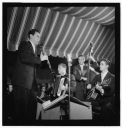 Keywords: (Portrait of Abe Most, Pete Ponti, Sid Jacobs, and Jimmy Norton, Hickory House, New York, N.Y., ca. June 1947) (LOC) (5104549355).jpg Gottlieb William P 1917- photographer Portrait of Abe Most Pete Ponti Sid Jacobs and Jimmy Norton Hickory House New York N Y ca June 1947 1 negative b w ; 2 1/4 x 2 1/4 in Notes Gottlieb Collection Assignment No 255 Reference print available in Music Division Library of Congress Purchase William P Gottlieb Forms part of William P Gottlieb Collection Library of Congress Subjects Most Abe Ponti Pete Jacobs Sid Norton Jimmy Jazz musicians--1940-1950 Clarinetists--1940-1950 Accordionists--1940-1950 Fifty-second Street New York N Y --1940-1950 Hickory House Format Portrait photographs--1940-1950 Cityscape photographs--1940-1950 Film negatives--1940-1950 Rights Info Mr Gottlieb has dedicated these works to the public domain but rights of privacy and publicity may apply http //lcweb2 loc gov/diglib/ihas/html/gottlieb/gottlieb-copyright html lcweb2 loc gov/diglib/ihas/html/gottlieb/gottlieb-copyrig Repository negative Library of Congress Prints Photographs Division Washington D C 20540 USA http //hdl loc gov/loc pnp/pp print hdl loc gov/loc pnp/pp print reference print Library of Congress Music Division Washington D C 20540 USA http //loc gov/rr/perform/ loc gov/rr/perform/ Part Of William P Gottlieb Collection DLC 99-401005 General information about the Gottlieb Collection is available at http //lcweb2 loc gov/diglib/ihas/html/gottlieb/gottlieb-home html lcweb2 loc gov/diglib/ihas/html/gottlieb/gottlieb-home html Persistent URL http //hdl loc gov/loc music/gottlieb 06481 hdl loc gov/loc music/gottlieb 06481 Call Number LC-GLB23- 0648<br/> PD-Gottlieb https //www flickr com/photos/library_of_congress/5104549355/ Portrait of Abe Most Pete Ponti Sid Jacobs and Jimmy Norton Hickory House New York N Y ca June 1947 LOC https //www flickr com/people/8623220 N02 The Library of Congress http //www loc gov/rr/print/195_copr html noknown The Library of Congress Flickr Commons Flickr-no known copyright restrictions The Library of Congress https //flickr com/photos/8623220 N02/5104549355 2015-09-01 22 53 24 pd Photographs by William P Gottlieb |