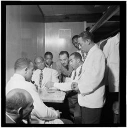 Keywords: (Portrait of Al Sears, Shelton Hemphill, Junior Raglin, Django Reinhardt, Lawrence Brown, Harry Carney, and Johnny Hodges, Aquarium, New York, N.Y., ca. Nov. 1946) (LOC) (4843127353).jpg Gottlieb William P 1917- photographer Portrait of Al Sears Shelton Hemphill Junior Raglin Django Reinhardt Lawrence Brown Harry Carney and Johnny Hodges Aquarium New York N Y ca Nov 1946 1 negative b w ; 2 1/4 x 2 1/4 in Notes Gottlieb Collection Assignment No 038 Reference print available in Music Division Library of Congress Purchase William P Gottlieb Forms part of William P Gottlieb Collection Library of Congress Subjects Sears Al 1910- Hemphill Shelton Raglin Junior 1917-1955 Reinhardt Django 1910-1953 Brown Lawrence 1907-1988 Carney Harry Hodges Johnny Duke Ellington Orchestra Jazz musicians--1940-1950 Big bands--1940-1950 Aquarium Format Portrait photographs--1940-1950 Group portraits--1940-1950 Film negatives--1940-1950 Rights Info Mr Gottlieb has dedicated these works to the public domain but rights of privacy and publicity may apply http //lcweb2 loc gov/diglib/ihas/html/gottlieb/gottlieb-copyright html lcweb2 loc gov/diglib/ihas/html/gottlieb/gottlieb-copyrig Repository negative Library of Congress Prints Photographs Division Washington D C 20540 USA http //hdl loc gov/loc pnp/pp print hdl loc gov/loc pnp/pp print reference print Library of Congress Music Division Washington D C 20540 USA http //loc gov/rr/perform/ loc gov/rr/perform/ Part Of William P Gottlieb Collection DLC 99-401005 General information about the Gottlieb Collection is available at http //lcweb2 loc gov/diglib/ihas/html/gottlieb/gottlieb-home html lcweb2 loc gov/diglib/ihas/html/gottlieb/gottlieb-home html Persistent URL http //hdl loc gov/loc music/gottlieb 02391 hdl loc gov/loc music/gottlieb 02391 Call Number LC-GLB23- 0239<br/> PD-Gottlieb https //www flickr com/photos/library_of_congress/4843127353/ Portrait of Al Sears Shelton Hemphill Junior Raglin Django Reinhardt Lawrence Brown Harry Carney and Johnny Hodges Aquarium New York N Y ca Nov 1946 LOC https //www flickr com/people/8623220 N02 The Library of Congress http //www loc gov/rr/print/195_copr html noknown The Library of Congress Flickr Commons Flickr-no known copyright restrictions The Library of Congress https //flickr com/photos/8623220 N02/4843127353 2015-09-01 22 54 02 pd Photographs by William P Gottlieb |