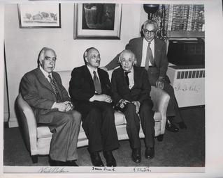 | Keywords: smithsonian institution smithsonianinstitution niels bohr nielsbohr james franck jamesfranck albert einstein alberteinstein isidor isaac rabi isidorisaacrabi physicists scientists quantum mechanics quantummechanics relativity technion couch einstein men meeting menmeeting old men oldmen smithsonian institution libraries smithsonianinstitutionlibraries Creator/Photographer: Unidentified photographer Medium: Black and white photographic print Dimensions: 20.7 cm x 25.5 cm Date: Unknown Repository: Smithsonian Institution Libraries Collection: Scientific Identity: Portraits from the Dibner Library of the History of Science and Technology - As a supplement to the Dibner Library for the History of Science and Technology's collection of written works by scientists, engineers, natural philosophers, and inventors, the library also has a collection of thousands of portraits of these individuals. The portraits come in a variety of formats: drawings, woodcuts, engravings, paintings, and photographs, all collected by donor Bern Dibner. Presented here are a few photos from the collection, from the late 19th and early 20th century. Accession number: SIL14-E1-09 Creator/Photographer: Unidentified photographer Medium: Black and white photographic print Dimensions: 20.7 cm x 25.5 cm Date: Unknown Repository: Smithsonian Institution Libraries Collection: Scientific Identity: Portraits from the Dibner Library of the History of Science and Technology - As a supplement to the Dibner Library for the History of Science and Technology's collection of written works by scientists, engineers, natural philosophers, and inventors, the library also has a collection of thousands of portraits of these individuals. The portraits come in a variety of formats: drawings, woodcuts, engravings, paintings, and photographs, all collected by donor Bern Dibner. Presented here are a few photos from the collection, from the late 19th and early 20th century. Accession number: SIL14-E1-09 |