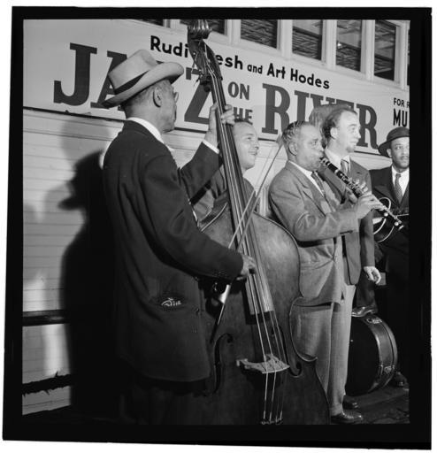 Keywords: (Portrait of Albert Nicholas and Rudi Blesh, Riverboat on the Hudson, N.Y., ca. July 1947) (LOC) (5105158394).jpg Gottlieb William P 1917- photographer Portrait of Albert Nicholas and Rudi Blesh Riverboat on the Hudson N Y ca July 1947 1 negative b w ; 2 1/4 x 2 1/4 in Notes Gottlieb Collection Assignment No 034 Reference print available in Music Division Library of Congress Purchase William P Gottlieb Forms part of William P Gottlieb Collection Library of Congress Subjects Nicholas Albert 1900 Blesh Rudi 1899- Jazz musicians--1940-1950 Double bassists--1940-1950 Clarinetists--1940-1950 Riverboat on the Hudson Format Portrait photographs--1940-1950 Group portraits--1940-1950 Film negatives--1940-1950 Rights Info Mr Gottlieb has dedicated these works to the public domain but rights of privacy and publicity may apply http //lcweb2 loc gov/diglib/ihas/html/gottlieb/gottlieb-copyright html lcweb2 loc gov/diglib/ihas/html/gottlieb/gottlieb-copyrig Repository negative Library of Congress Prints Photographs Division Washington D C 20540 USA http //hdl loc gov/loc pnp/pp print hdl loc gov/loc pnp/pp print reference print Library of Congress Music Division Washington D C 20540 USA http //loc gov/rr/perform/ loc gov/rr/perform/ Part Of William P Gottlieb Collection DLC 99-401005 General information about the Gottlieb Collection is available at http //lcweb2 loc gov/diglib/ihas/html/gottlieb/gottlieb-home html lcweb2 loc gov/diglib/ihas/html/gottlieb/gottlieb-home html Persistent URL http //hdl loc gov/loc music/gottlieb 07431 hdl loc gov/loc music/gottlieb 07431 Call Number LC-GLB23- 0743<br/> PD-Gottlieb https //www flickr com/photos/library_of_congress/5105158394/ Portrait of Albert Nicholas and Rudi Blesh Riverboat on the Hudson N Y ca July 1947 LOC https //www flickr com/people/8623220 N02 The Library of Congress http //www loc gov/rr/print/195_copr html noknown The Library of Congress Flickr Commons Flickr-no known copyright restrictions The Library of Congress https //flickr com/photos/8623220 N02/5105158394 2015-09-01 22 52 27 pd 1940s Albert Nicholas Danny Barker Pops Foster Photographs by William P Gottlieb |