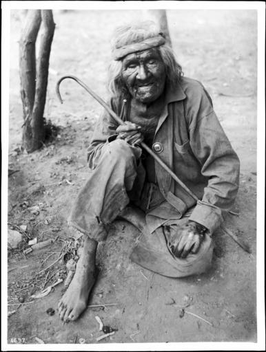 | Keywords: Portrait of an old Havasupai man, ca.1900 (CHS-4697).jpg en <br> Portrait of an old Havasupai man ca 1900 Photographic portrait of an old Havasupai man ca 1900 He can be seen seated on the ground holding a cane in his right hand He wears a long-sleeved shirt and matching pants He has no shoes but he wears a bandanna around his head The trunks of two small trees are visible behind him Call number CHS-4697 Photographer James George Wharton Filename CHS-4697 Coverage date circa 1900 Part of collection California Historical Society Collection 1860-1960 Type images Part of subcollection Title Insurance and Trust and C C Pierce Photography Collection 1860-1960 Repository name USC Libraries Special Collections Format glass plate negatives Microfiche number 1-167- Archival file chs_Volume98/CHS-4697 tiff Repository address Doheny Memorial Library Los Angeles CA 90089-0189 Geographic subject country USA Format aacr2 2 photographs glass photonegative photoprint b w ; 22 x 17 cm Rights Digitally reproduced by the USC Digital Library; From the California Historical Society Collection at the University of Southern California Subject adlf tribal areas Project USC Accession number 4697 Repository email specol usc edu Identifying number plate no James-657 Contributing entity California Historical Society Date created circa 1900 Publisher of the digital version University of Southern California Libraries Format aat photographic prints; photographs Legacy record ID chs-m17013; USC-1-1-1-13517 Access conditions Send requests to address or e-mail given Phone 213 821-2366; fax 213 740-2343 Subject file heading Indians -- Havasupai Subject lcsh Indians of North America; Havasupai Indians; Men Subject Havasupai Indians circa 1900 date created James George Wharton http //digitallibrary usc edu/cdm/ref/collection/p15799coll65/id/17028 PD-old-70-1923 Images from USC Digital Library uploaded by Fæ California Historical Society Collection 1860-1960 Glass plate negatives Havasupai Photographs by George Wharton James |