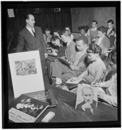 Keywords: (Portrait of Arthur Aaron, ca. July 1947) (LOC) (5395859738).jpg Gottlieb William P 1917- photographer Portrait of Arthur Aaron ca July 1947 1 negative b w ; 2 1/4 x 2 1/4 in Caption from Down Beat These pictures show Metropolitan Vocational High students at work in a school where pop music is treated on the same plane as classical music One of the two high schools in New York with a big music department it is probably one of the very few public schools in the country that prepares boys and girls to be working musicians The first picture shows the long-hair group in the classroom; the center photo caught them being given the inescapable quiz; the last shot is of the swing band class Note the pictures of Toscanini and Harry James in juxtaposition The teachers shown are Julius Grossman longhair group; Arthur Aaron quiz class and Irving Lasch jazz group Notes Gottlieb Collection Assignment No 253 Purchase William P Gottlieb Forms part of William P Gottlieb Collection Library of Congress In Dance music harmony included in curriculum Down Beat v 14 no 14 July 2 1947 p 6 Subjects Aaron Arthur Conservatories of music--1940-1950 Format Portrait photographs--1940-1950 Group portraits--1940-1950 Film negatives--1940-1950 Rights Info Mr Gottlieb has dedicated these works to the public domain but rights of privacy and publicity may apply http //lcweb2 loc gov/diglib/ihas/html/gottlieb/gottlieb-copyright html lcweb2 loc gov/diglib/ihas/html/gottlieb/gottlieb-copyrig Repository negative Library of Congress Prints Photographs Division Washington D C 20540 USA http //hdl loc gov/loc pnp/pp print hdl loc gov/loc pnp/pp print Part Of William P Gottlieb Collection DLC 99-401005 General information about the Gottlieb Collection is available at http //lcweb2 loc gov/diglib/ihas/html/gottlieb/gottlieb-home html lcweb2 loc gov/diglib/ihas/html/gottlieb/gottlieb-home html Persistent URL http //hdl loc gov/loc music/gottlieb 14331 hdl loc gov/loc music/gottlieb 14331 Call Number LC-GLB23- 1433<br/> PD-Gottlieb https //www flickr com/photos/library_of_congress/5395859738/ Portrait of Arthur Aaron ca July 1947 LOC https //www flickr com/people/8623220 N02 The Library of Congress http //www loc gov/rr/print/195_copr html noknown The Library of Congress Flickr Commons Flickr-no known copyright restrictions The Library of Congress https //flickr com/photos/8623220 N02/5395859738 2015-09-01 22 56 00 pd Photographs by William P Gottlieb Arthur Aaron |