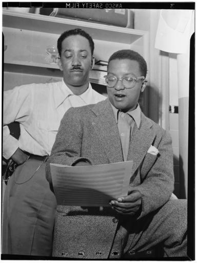 Keywords: (Portrait of Billy Strayhorn, New York, N.Y., ca. June 1947) (LOC) (5148190861).jpg Gottlieb William P 1917- photographer Portrait of Billy Strayhorn New York N Y ca June 1947 1 negative b w ; 3 1/4 x 4 1/4 in Caption from Down Beat Los Angeles--Richard M Jones at right above valet and chief factotum for Duke Ellington for two decades died here on August 6 from a complication of illnesses Knows as Jonesy or Bowdin to members of the band he joined Ellington in 1927 at the Cotton Club and had been a trusted employee ever since He is seen above with Billy Strayhorn arranger left and Jerome Rhea secretary discussing one of the maestro's neckties Notes Gottlieb Collection Assignment No 477 Reference print available in Music Division Library of Congress Purchase William P Gottlieb Forms part of William P Gottlieb Collection Library of Congress In Jonesy answers final call Down Beat v 13 no 18 Aug 26 1946 p 2 Subjects Strayhorn Billy Rhea Jerome Jones Richard M Jazz musicians--1940-1950 Composers--1940-1950 Pianists--1940-1950 Format Portrait photographs--1940-1950 Group portraits--1940-1950 Film negatives--1940-1950 Rights Info Mr Gottlieb has dedicated these works to the public domain but rights of privacy and publicity may apply http //lcweb2 loc gov/diglib/ihas/html/gottlieb/gottlieb-copyright html lcweb2 loc gov/diglib/ihas/html/gottlieb/gottlieb-copyrig Repository negative Library of Congress Prints Photographs Division Washington D C 20540 USA http //hdl loc gov/loc pnp/pp print hdl loc gov/loc pnp/pp print reference print Library of Congress Music Division Washington D C 20540 USA http //loc gov/rr/perform/ loc gov/rr/perform/ Part Of William P Gottlieb Collection DLC 99-401005 General information about the Gottlieb Collection is available at http //lcweb2 loc gov/diglib/ihas/html/gottlieb/gottlieb-home html lcweb2 loc gov/diglib/ihas/html/gottlieb/gottlieb-home html Persistent URL http //hdl loc gov/loc music/gottlieb 08231 hdl loc gov/loc music/gottlieb 08231 Call Number LC-GLB13- 0823<br/> PD-Gottlieb https //www flickr com/photos/library_of_congress/5148190861/ Portrait of Billy Strayhorn New York N Y ca June 1947 LOC https //www flickr com/people/8623220 N02 The Library of Congress http //www loc gov/rr/print/195_copr html noknown The Library of Congress Flickr Commons Flickr-no known copyright restrictions The Library of Congress https //flickr com/photos/8623220 N02/5148190861 2015-09-01 22 57 28 pd Photographs by William P Gottlieb |