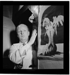 Keywords: (Portrait of Edwin A. Finckel in his home, Greenwich Village, New York, N.Y., ca. Nov. 1946) (LOC) (4977076272).jpg Gottlieb William P 1917- photographer Portrait of Edwin A Finckel in his home Greenwich Village New York N Y ca Nov 1946 1 negative b w ; 2 1/4 x 2 1/4 in Caption from Down Beat Currently arranging and generally running the music end for the Buddy Rich orchestra Eddie is the ex-Washington arranger who wrote and scored Boyd Meets Stravinsky and other revolutionary items for which Boyd Raeburn and Geoge Handy are generally credited Eddie and his wife Helen altoist Harry Klee's sister live in one of those mad Greenwich Village apartments you read about but seldom see It has red ceilings a stairway in the middle of the studio and a two-tier breakfast room Among the more-or-less permanent furnishings are paintings by Finckel including the impaled hands in the photo and Alec Wilder who has a bed there for resting between wild flights of music writing Notes Gottlieb Collection Assignment No 508 Reference print available in Music Division Library of Congress Purchase William P Gottlieb Forms part of William P Gottlieb Collection Library of Congress In The Record Changer v 5 no 9 Nov 46 1946 p 13 Subjects Finckel Edwin A Jazz musicians--1940-1950 Format Portrait photographs--1940-1950 Film negatives--1940-1950 Rights Info Mr Gottlieb has dedicated these works to the public domain but rights of privacy and publicity may apply http //lcweb2 loc gov/diglib/ihas/html/gottlieb/gottlieb-copyright html lcweb2 loc gov/diglib/ihas/html/gottlieb/gottlieb-copyrig Repository negative Library of Congress Prints Photographs Division Washington D C 20540 USA http //hdl loc gov/loc pnp/pp print hdl loc gov/loc pnp/pp print contact print Library of Congress Prints Photographs Division Washington D C 20540 USA http //hdl loc gov/loc pnp/pp print hdl loc gov/loc pnp/pp print reference print Library of Congress Music Division Washington D C 20540 USA http //loc gov/rr/perform/ loc gov/rr/perform/ Part Of William P Gottlieb Collection DLC 99-401005 General information about the Gottlieb Collection is available at http //lcweb2 loc gov/diglib/ihas/html/gottlieb/gottlieb-home html lcweb2 loc gov/diglib/ihas/html/gottlieb/gottlieb-home html Persistent URL http //hdl loc gov/loc music/gottlieb 02821 hdl loc gov/loc music/gottlieb 02821 Call Number LC-GLB23- 0282<br/> PD-Gottlieb https //www flickr com/photos/library_of_congress/4977076272/ Portrait of Edwin A Finckel in his home Greenwich Village New York N Y ca Nov 1946 LOC https //www flickr com/people/8623220 N02 The Library of Congress http //www loc gov/rr/print/195_copr html noknown The Library of Congress Flickr Commons Flickr-no known copyright restrictions The Library of Congress https //flickr com/photos/8623220 N02/4977076272 2015-09-01 22 55 10 pd Photographs by William P Gottlieb
