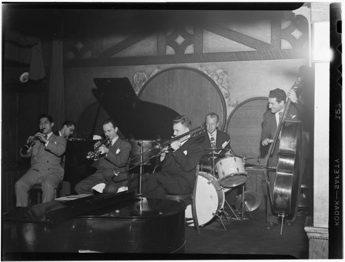 | Keywords: (Portrait of Ernie Caceres, Bobby Hackett, Freddie Ohms, and George Wettling, Nick's (Tavern)(?), New York, N.Y., between 1946 and 1948) (LOC) (4977088868).jpg Gottlieb William P 1917- photographer Portrait of Ernie Caceres Bobby Hackett Freddie Ohms and George Wettling Nick's Tavern New York N Y between 1946 and 1948 1 negative b w ; 3 1/4 x 4 1/4 in Notes Gottlieb Collection Assignment No 389 Reference print available in Music Division Library of Congress Purchase William P Gottlieb Forms part of William P Gottlieb Collection Library of Congress Subjects Caceres Ernie Hackett Bobby Ohms Freddie Wettling George 1907-1968 Jazz musicians--1940-1950 Format Portrait photographs--1940-1950 Group portraits--1940-1950 Film negatives--1940-1950 Rights Info Mr Gottlieb has dedicated these works to the public domain but rights of privacy and publicity may apply http //lcweb2 loc gov/diglib/ihas/html/gottlieb/gottlieb-copyright html lcweb2 loc gov/diglib/ihas/html/gottlieb/gottlieb-copyrig Repository negative Library of Congress Prints Photographs Division Washington D C 20540 USA http //hdl loc gov/loc pnp/pp print hdl loc gov/loc pnp/pp print reference print Library of Congress Music Division Washington D C 20540 USA http //loc gov/rr/perform/ loc gov/rr/perform/ Part Of William P Gottlieb Collection DLC 99-401005 General information about the Gottlieb Collection is available at http //lcweb2 loc gov/diglib/ihas/html/gottlieb/gottlieb-home html lcweb2 loc gov/diglib/ihas/html/gottlieb/gottlieb-home html Persistent URL http //hdl loc gov/loc music/gottlieb 03631 hdl loc gov/loc music/gottlieb 03631 Call Number LC-GLB13- 0363<br/> PD-Gottlieb https //www flickr com/photos/library_of_congress/4977088868/ Portrait of Ernie Caceres Bobby Hackett Freddie Ohms and George Wettling Nick's Tavern New York N Y between 1946 and 1948 LOC https //www flickr com/people/8623220 N02 The Library of Congress http //www loc gov/rr/print/195_copr html noknown The Library of Congress Flickr Commons Flickr-no known copyright restrictions The Library of Congress https //flickr com/photos/8623220 N02/4977088868 2015-09-01 22 55 26 pd Photographs by William P Gottlieb George Wettling Bobby Hackett Ernie Caceres Freddie Ohms (Portrait of Ernie Caceres, Bobby Hackett, Freddie Ohms, and George Wettling, Nick's (Tavern)(?), New York, N.Y., between 1946 and 1948) (LOC) (4977088868).jpg Gottlieb William P 1917- photographer Portrait of Ernie Caceres Bobby Hackett Freddie Ohms and George Wettling Nick's Tavern New York N Y between 1946 and 1948 1 negative b w ; 3 1/4 x 4 1/4 in Notes Gottlieb Collection Assignment No 389 Reference print available in Music Division Library of Congress Purchase William P Gottlieb Forms part of William P Gottlieb Collection Library of Congress Subjects Caceres Ernie Hackett Bobby Ohms Freddie Wettling George 1907-1968 Jazz musicians--1940-1950 Format Portrait photographs--1940-1950 Group portraits--1940-1950 Film negatives--1940-1950 Rights Info Mr Gottlieb has dedicated these works to the public domain but rights of privacy and publicity may apply http //lcweb2 loc gov/diglib/ihas/html/gottlieb/gottlieb-copyright html lcweb2 loc gov/diglib/ihas/html/gottlieb/gottlieb-copyrig Repository negative Library of Congress Prints Photographs Division Washington D C 20540 USA http //hdl loc gov/loc pnp/pp print hdl loc gov/loc pnp/pp print reference print Library of Congress Music Division Washington D C 20540 USA http //loc gov/rr/perform/ loc gov/rr/perform/ Part Of William P Gottlieb Collection DLC 99-401005 General information about the Gottlieb Collection is available at http //lcweb2 loc gov/diglib/ihas/html/gottlieb/gottlieb-home html lcweb2 loc gov/diglib/ihas/html/gottlieb/gottlieb-home html Persistent URL http //hdl loc gov/loc music/gottlieb 03631 hdl loc gov/loc music/gottlieb 03631 Call Number LC-GLB13- 0363<br/> PD-Gottlieb https //www flickr com/photos/library_of_congress/4977088868/ Portrait of Ernie Caceres Bobby Hackett Freddie Ohms and George Wettling Nick's Tavern New York N Y between 1946 and 1948 LOC https //www flickr com/people/8623220 N02 The Library of Congress http //www loc gov/rr/print/195_copr html noknown The Library of Congress Flickr Commons Flickr-no known copyright restrictions The Library of Congress https //flickr com/photos/8623220 N02/4977088868 2015-09-01 22 55 26 pd Photographs by William P Gottlieb George Wettling Bobby Hackett Ernie Caceres Freddie Ohms |