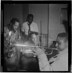 Keywords: (Portrait of Fats Navarro, Charlie Rouse, Ernie Henry, and Tadd Dameron, New York, N.Y., between 1946 and 1948) (LOC) (4843753786).jpg Gottlieb William P 1917- photographer Portrait of Fats Navarro Charlie Rouse Ernie Henry and Tadd Dameron New York N Y between 1946 and 1948 1 negative b w ; 2 1/4 x 2 1/4 in Notes Gottlieb Collection Assignment No 095 Reference print available in Music Division Library of Congress Purchase William P Gottlieb Forms part of William P Gottlieb Collection Library of Congress Subjects Navarro Fats d 1950 Rouse Charlie Henry Ernie Dameron Tadd 1917-1965 Jazz musicians--1940-1950 Trumpet players--1940-1950 Saxophonists--1940-1950 Pianists--1940-1950 Format Portrait photographs--1940-1950 Cityscape photographs--1940-1950 Film negatives--1940-1950 Rights Info Mr Gottlieb has dedicated these works to the public domain but rights of privacy and publicity may apply http //lcweb2 loc gov/diglib/ihas/html/gottlieb/gottlieb-copyright html lcweb2 loc gov/diglib/ihas/html/gottlieb/gottlieb-copyrig Repository negative Library of Congress Prints Photographs Division Washington D C 20540 USA http //hdl loc gov/loc pnp/pp print hdl loc gov/loc pnp/pp print reference print Library of Congress Music Division Washington D C 20540 USA http //loc gov/rr/perform/ loc gov/rr/perform/ Part Of William P Gottlieb Collection DLC 99-401005 General information about the Gottlieb Collection is available at http //lcweb2 loc gov/diglib/ihas/html/gottlieb/gottlieb-home html lcweb2 loc gov/diglib/ihas/html/gottlieb/gottlieb-home html Persistent URL http //hdl loc gov/loc music/gottlieb 06541 hdl loc gov/loc music/gottlieb 06541 Call Number LC-GLB23- 0654<br/> PD-Gottlieb https //www flickr com/photos/library_of_congress/4843753786/ Portrait of Fats Navarro Charlie Rouse Ernie Henry and Tadd Dameron New York N Y between 1946 and 1948 LOC https //www flickr com/people/8623220 N02 The Library of Congress http //www loc gov/rr/print/195_copr html noknown The Library of Congress Flickr Commons Flickr-no known copyright restrictions The Library of Congress https //flickr com/photos/8623220 N02/4843753786 2015-09-01 22 51 59 pd Photographs by William P Gottlieb |