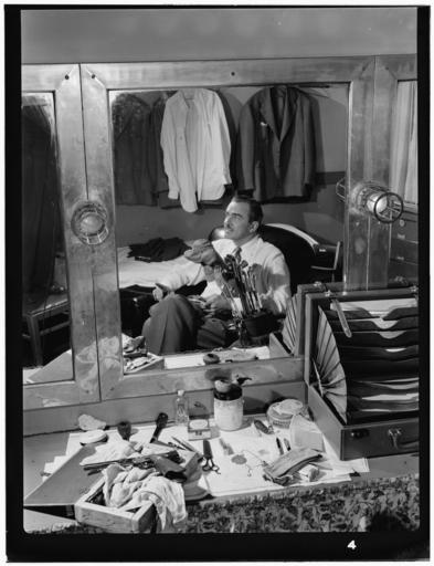 Keywords: (Portrait of Glen Gray, Paramount Theater, New York, N.Y., ca. July 1946) (LOC) (4843129995).jpg Gottlieb William P 1917- photographer Portrait of Glen Gray Paramount Theater New York N Y ca July 1946 1 negative b w ; 3 1/4 x 4 1/4 in Caption from Down Beat Second in a series of intimate shots of name musicians by Bill Gottlieb as reflected in their dressing room mirrors is Glen Gray leader of Casa Loma posed during his recent engagement at the New York Paramount theater No character is Mr Gray but a substantial pillar of the community as shown by the absence of loud ties and trick suits and the presence of a huge bag of golf clubs a business-like smoking pipe and a neat portable office unfolded at the right Notes Gottlieb Collection Assignment No 386 Reference print available in Music Division Library of Congress Purchase William P Gottlieb Forms part of William P Gottlieb Collection Library of Congress In Through the looking glass Down Beat v 13 no 14 July 1 1946 p 12 Subjects Gray Glen 1906-1963 Jazz musicians--1940-1950 Saxophonists--1940-1950 Paramount Theater Format Portrait photographs--1940-1950 Film negatives--1940-1950 Rights Info Mr Gottlieb has dedicated these works to the public domain but rights of privacy and publicity may apply http //lcweb2 loc gov/diglib/ihas/html/gottlieb/gottlieb-copyright html lcweb2 loc gov/diglib/ihas/html/gottlieb/gottlieb-copyrig Repository negative Library of Congress Prints Photographs Division Washington D C 20540 USA http //hdl loc gov/loc pnp/pp print hdl loc gov/loc pnp/pp print reference print Library of Congress Music Division Washington D C 20540 USA http //loc gov/rr/perform/ loc gov/rr/perform/ Part Of William P Gottlieb Collection DLC 99-401005 General information about the Gottlieb Collection is available at http //lcweb2 loc gov/diglib/ihas/html/gottlieb/gottlieb-home html lcweb2 loc gov/diglib/ihas/html/gottlieb/gottlieb-home html Persistent URL http //hdl loc gov/loc music/gottlieb 03501 hdl loc gov/loc music/gottlieb 03501 Call Number LC-GLB23- 0350<br/> PD-Gottlieb https //www flickr com/photos/library_of_congress/4843129995/ Portrait of Glen Gray Paramount Theater New York N Y ca July 1946 LOC https //www flickr com/people/8623220 N02 The Library of Congress http //www loc gov/rr/print/195_copr html noknown The Library of Congress Flickr Commons Flickr-no known copyright restrictions The Library of Congress https //flickr com/photos/8623220 N02/4843129995 2015-09-02 00 12 02 pd Pipe smoking Photographs by William P Gottlieb |