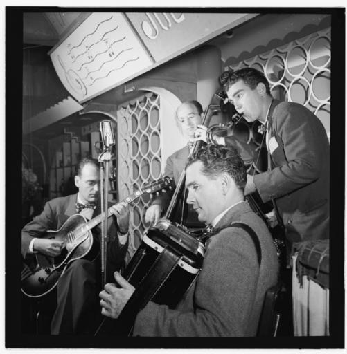 | Keywords: (Portrait of Joe Mooney, Gaeton (Gate) Frega, and Andy Fitzgerald, Dixon's Steak House(?), New York, N.Y., ca. Oct. 1946) (LOC) (5061912165).jpg Gottlieb William P 1917- photographer Portrait of Joe Mooney Gaeton Gate Frega and Andy Fitzgerald Dixon's Steak House New York N Y ca Oct 1946 1 negative b w ; 2 1/4 x 2 1/4 in Notes Gottlieb Collection Assignment No 234 Reference print available in Music Division Library of Congress Purchase William P Gottlieb Forms part of William P Gottlieb Collection Library of Congress Subjects Mooney Joe 1911-1975 Frega Gaeton Gate Fitzgerald Andy Joe Mooney Quartet Jazz musicians--1940-1950 Accordionists--1940-1950 Guitarists--1940-1950 Double bassists--1940-1950 Clarinetists--1940-1950 Format Portrait photographs--1940-1950 Group portraits--1940-1950 Film negatives--1940-1950 Rights Info Mr Gottlieb has dedicated these works to the public domain but rights of privacy and publicity may apply http //lcweb2 loc gov/diglib/ihas/html/gottlieb/gottlieb-copyright html lcweb2 loc gov/diglib/ihas/html/gottlieb/gottlieb-copyrig Repository negative Library of Congress Prints Photographs Division Washington D C 20540 USA http //hdl loc gov/loc pnp/pp print hdl loc gov/loc pnp/pp print reference print Library of Congress Music Division Washington D C 20540 USA http //loc gov/rr/perform/ loc gov/rr/perform/ Part Of William P Gottlieb Collection DLC 99-401005 General information about the Gottlieb Collection is available at http //lcweb2 loc gov/diglib/ihas/html/gottlieb/gottlieb-home html lcweb2 loc gov/diglib/ihas/html/gottlieb/gottlieb-home html Persistent URL http //hdl loc gov/loc music/gottlieb 06331 hdl loc gov/loc music/gottlieb 06331 Call Number LC-GLB23- 0633<br/> PD-Gottlieb https //www flickr com/photos/library_of_congress/5061912165/ Portrait of Joe Mooney Gaeton Gate Frega and Andy Fitzgerald Dixon's Steak House New York N Y ca Oct 1946 LOC https //www flickr com/people/8623220 N02 The Library of Congress http //www loc gov/rr/print/195_copr html noknown The Library of Congress Flickr Commons Flickr-no known copyright restrictions The Library of Congress https //flickr com/photos/8623220 N02/5061912165 2015-09-02 00 09 44 pd Photographs by William P Gottlieb Joe Mooney Gate Frega Andy Fitzgerald (Portrait of Joe Mooney, Gaeton (Gate) Frega, and Andy Fitzgerald, Dixon's Steak House(?), New York, N.Y., ca. Oct. 1946) (LOC) (5061912165).jpg Gottlieb William P 1917- photographer Portrait of Joe Mooney Gaeton Gate Frega and Andy Fitzgerald Dixon's Steak House New York N Y ca Oct 1946 1 negative b w ; 2 1/4 x 2 1/4 in Notes Gottlieb Collection Assignment No 234 Reference print available in Music Division Library of Congress Purchase William P Gottlieb Forms part of William P Gottlieb Collection Library of Congress Subjects Mooney Joe 1911-1975 Frega Gaeton Gate Fitzgerald Andy Joe Mooney Quartet Jazz musicians--1940-1950 Accordionists--1940-1950 Guitarists--1940-1950 Double bassists--1940-1950 Clarinetists--1940-1950 Format Portrait photographs--1940-1950 Group portraits--1940-1950 Film negatives--1940-1950 Rights Info Mr Gottlieb has dedicated these works to the public domain but rights of privacy and publicity may apply http //lcweb2 loc gov/diglib/ihas/html/gottlieb/gottlieb-copyright html lcweb2 loc gov/diglib/ihas/html/gottlieb/gottlieb-copyrig Repository negative Library of Congress Prints Photographs Division Washington D C 20540 USA http //hdl loc gov/loc pnp/pp print hdl loc gov/loc pnp/pp print reference print Library of Congress Music Division Washington D C 20540 USA http //loc gov/rr/perform/ loc gov/rr/perform/ Part Of William P Gottlieb Collection DLC 99-401005 General information about the Gottlieb Collection is available at http //lcweb2 loc gov/diglib/ihas/html/gottlieb/gottlieb-home html lcweb2 loc gov/diglib/ihas/html/gottlieb/gottlieb-home html Persistent URL http //hdl loc gov/loc music/gottlieb 06331 hdl loc gov/loc music/gottlieb 06331 Call Number LC-GLB23- 0633<br/> PD-Gottlieb https //www flickr com/photos/library_of_congress/5061912165/ Portrait of Joe Mooney Gaeton Gate Frega and Andy Fitzgerald Dixon's Steak House New York N Y ca Oct 1946 LOC https //www flickr com/people/8623220 N02 The Library of Congress http //www loc gov/rr/print/195_copr html noknown The Library of Congress Flickr Commons Flickr-no known copyright restrictions The Library of Congress https //flickr com/photos/8623220 N02/5061912165 2015-09-02 00 09 44 pd Photographs by William P Gottlieb Joe Mooney Gate Frega Andy Fitzgerald |