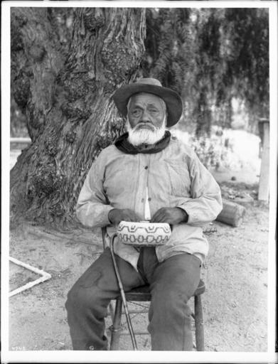 Keywords: Portrait of Jose Pedro Losero, Soboba Indian, California, ca.1894 (CHS-4743).jpg en <br> Portrait of Jose Pedro Losero Soboba Indian California ca 1894 Photographic portrait of Jose Pedro Losero Soboba Indian California ca 1894 He can be seen seated on a wooden chair wearing a long-sleeved shirt pants a dark bandana around his neck and a hat He holds a basket on his lap while a cane rests against the inside of his right thigh He has a white long beard and a gray moustache A few trees are visible in the background Call number CHS-4743 Photographer James George Wharton Filename CHS-4743 Coverage date circa 1894 Part of collection California Historical Society Collection 1860-1960 Format glass plate negatives Type images Part of subcollection Title Insurance and Trust and C C Pierce Photography Collection 1860-1960 Repository name USC Libraries Special Collections Accession number 4743 Microfiche number 1-172- Archival file chs_Volume98/CHS-4743 tiff Repository address Doheny Memorial Library Los Angeles CA 90089-0189 Geographic subject country USA Format aacr2 3 photographs glass photonegative photoprints b w ; 22 x 17 cm 21 x 26 cm Rights Digitally reproduced by the USC Digital Library; From the California Historical Society Collection at the University of Southern California Subject adlf tribal areas Project USC Repository email specol usc edu Contributing entity California Historical Society Date created circa 1894 Publisher of the digital version University of Southern California Libraries Format aat photographic prints; photographs Geographic subject state California Legacy record ID chs-m17053; USC-1-1-1-13930 Access conditions Send requests to address or e-mail given Phone 213 821-2366; fax 213 740-2343 Subject file heading Indians -- Mission -- Saboda Subject lcsh Indians of North America; Missions Spanish; Mission Indians Subject Saboda Indians; Losero Jose Pedro; Indians circa 1894 date created George Wharton James 1858 1923 http //digitallibrary usc edu/cdm/ref/collection/p15799coll65/id/17066 PD-old-70-1923 Images from USC Digital Library uploaded by Fæ Photographs by George Wharton James California Historical Society Collection 1860-1960 Glass plate negatives Cahuilla |