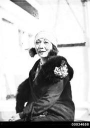 | Keywords: samuel j hood collection samueljhoodcollection portrait woman hat vintage hat vintagehat vintage clothing vintageclothing vintage fashion vintagefashion fur ss sierra sssierra san francisco sanfrancisco honolulu sydney harbour sydneyharbour movietone sydney 1930s fashion 1930sfashion 1920s fashion 1920sfashion 1930s women's clothing 1930swomensclothing ship merchant vessel merchantvessel passenger liner passengerliner flapper japanese flapper japaneseflapper modan gaaru modangaaru moga konosan tivoli theatre tivolitheatre performer vaudeville blackandwhite people monochrome black and white This photograph depicts Japanese vaudeville performer, singer and comedienne, Kono San (or Konosan), at a Movietone event board SS SIERRA. The photograph was probably taken on 8 August 1929 at Circular Quay during the welcoming and celebrations of the arrival of Australia's first Movietone News truck. Kono San was on her Australian tour and performed at Melbourne's Tivoli Theatre the day after her arrival in Sydney. This photo is part of the Australian National Maritime Museum’s Samuel J. Hood Studio collection. Sam Hood (1872-1953) was a Sydney photographer with a passion for ships. His 60-year career spanned the romantic age of sail and two world wars. The photos in the collection were taken mainly in Sydney and Newcastle during the first half of the 20th century. The ANMM undertakes research and accepts public comments that enhance the information we hold about images in our collection. This record has been updated accordingly. Photographer: Samuel J. Hood Studio Collection Object no. 00034658 This photograph depicts Japanese vaudeville performer, singer and comedienne, Kono San (or Konosan), at a Movietone event board SS SIERRA. The photograph was probably taken on 8 August 1929 at Circular Quay during the welcoming and celebrations of the arrival of Australia's first Movietone News truck. Kono San was on her Australian tour and performed at Melbourne's Tivoli Theatre the day after her arrival in Sydney. This photo is part of the Australian National Maritime Museum’s Samuel J. Hood Studio collection. Sam Hood (1872-1953) was a Sydney photographer with a passion for ships. His 60-year career spanned the romantic age of sail and two world wars. The photos in the collection were taken mainly in Sydney and Newcastle during the first half of the 20th century. The ANMM undertakes research and accepts public comments that enhance the information we hold about images in our collection. This record has been updated accordingly. Photographer: Samuel J. Hood Studio Collection Object no. 00034658 |