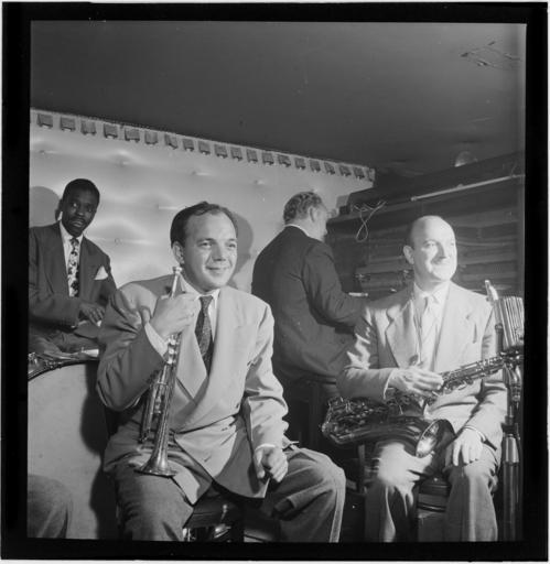 | Keywords: (Portrait of Marty Marsala and Bud Freeman, between 1938 and 1948) (LOC) (5062516718).jpg Gottlieb William P 1917- photographer Portrait of Marty Marsala and Bud Freeman between 1938 and 1948 1 negative b w ; 2 1/4 x 2 1/4 in Notes Gottlieb Collection Assignment No 368 Reference print available in Music Division Library of Congress Purchase William P Gottlieb Forms part of William P Gottlieb Collection Library of Congress Subjects Marsala Marty Freeman Bud 1906- Jazz musicians--1930-1950 Trumpet players--1930-1950 Saxophonists--1930-1950 Drummers Musicians --1930-1950 Pianists--1930-1950 Format Portrait photographs--1930-1950 Group portraits--1930-1950 Film negatives--1930-1950 Rights Info Mr Gottlieb has dedicated these works to the public domain but rights of privacy and publicity may apply http //lcweb2 loc gov/diglib/ihas/html/gottlieb/gottlieb-copyright html lcweb2 loc gov/diglib/ihas/html/gottlieb/gottlieb-copyrig Repository negative Library of Congress Prints Photographs Division Washington D C 20540 USA http //hdl loc gov/loc pnp/pp print hdl loc gov/loc pnp/pp print reference print Library of Congress Music Division Washington D C 20540 USA http //loc gov/rr/perform/ loc gov/rr/perform/ Part Of William P Gottlieb Collection DLC 99-401005 General information about the Gottlieb Collection is available at http //lcweb2 loc gov/diglib/ihas/html/gottlieb/gottlieb-home html lcweb2 loc gov/diglib/ihas/html/gottlieb/gottlieb-home html Persistent URL http //hdl loc gov/loc music/gottlieb 06081 hdl loc gov/loc music/gottlieb 06081 Call Number LC-GLB23- 0608<br/> PD-Gottlieb https //www flickr com/photos/library_of_congress/5062516718/ Portrait of Marty Marsala and Bud Freeman between 1938 and 1948 LOC https //www flickr com/people/8623220 N02 The Library of Congress http //www loc gov/rr/print/195_copr html noknown The Library of Congress Flickr Commons Flickr-no known copyright restrictions The Library of Congress https //flickr com/photos/8623220 N02/5062516718 2015-09-02 00 08 03 pd Photographs by William P Gottlieb Marty Marsala Bud Freeman |