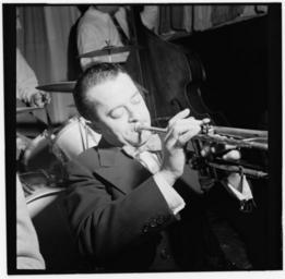 | Keywords: (Portrait of Max Kaminsky, Eddie Condon's, New York, N.Y., ca. Sept. 1946) (LOC) (5020404976).jpg Gottlieb William P 1917- photographer Portrait of Max Kaminsky Eddie Condon's New York N Y ca Sept 1946 1 negative b w ; 2 1/4 x 2 1/4 in Caption from Down Beat Galloped back to Condon's to pick up dictaphone rolls and interrogate Max Kaminsky whose horn led Condon Club revolution away from Dixieland Notes Gottlieb Collection Assignment No 421 Reference print available in Music Division Library of Congress Purchase William P Gottlieb Forms part of William P Gottlieb Collection Library of Congress In Posin' Down Beat v 13 no 20 Sept 23 1946 p 3 Subjects Kaminsky Max 1908- Jazz musicians--1940-1950 Trumpet players--1940-1950 Eddie Condon's Format Portrait photographs--1940-1950 Group portraits--1940-1950 Film negatives--1940-1950 Rights Info Mr Gottlieb has dedicated these works to the public domain but rights of privacy and publicity may apply http //lcweb2 loc gov/diglib/ihas/html/gottlieb/gottlieb-copyright html lcweb2 loc gov/diglib/ihas/html/gottlieb/gottlieb-copyrig Repository negative Library of Congress Prints Photographs Division Washington D C 20540 USA http //hdl loc gov/loc pnp/pp print hdl loc gov/loc pnp/pp print reference print Library of Congress Music Division Washington D C 20540 USA http //loc gov/rr/perform/ loc gov/rr/perform/ Part Of William P Gottlieb Collection DLC 99-401005 General information about the Gottlieb Collection is available at http //lcweb2 loc gov/diglib/ihas/html/gottlieb/gottlieb-home html lcweb2 loc gov/diglib/ihas/html/gottlieb/gottlieb-home html Persistent URL http //hdl loc gov/loc music/gottlieb 04811 hdl loc gov/loc music/gottlieb 04811 Call Number LC-GLB23- 0481<br/> PD-Gottlieb https //www flickr com/photos/library_of_congress/5020404976/ Portrait of Max Kaminsky Eddie Condon's New York N Y ca Sept 1946 LOC https //www flickr com/people/8623220 N02 The Library of Congress http //www loc gov/rr/print/195_copr html noknown The Library of Congress Flickr Commons Flickr-no known copyright restrictions The Library of Congress https //flickr com/photos/8623220 N02/5020404976 2015-09-02 00 10 34 pd Photographs by William P Gottlieb |