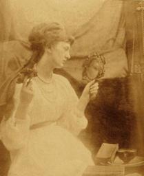 Keywords: Portrait of May Prinsep holding mirror and flower by Julia Margaret Cameron 1870.jpg en Portrait of May Prinsep holding mirror and flower albumen print by the British photographer Julia Margaret Cameron 370 mm x 270 mm Courtesy of the Dimbola Lodge Museum Isle of Wight 2011-04-24 Dimbola Lodge Museum http //www dimbola com/archive/Page_08_May_Prinsep html Creator Julia Margaret Cameron PD-old-100 Uploaded with UploadWizard Photographs by Julia Margaret Cameron Black and white photographic portraits of women May Prinsep |