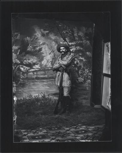 | Keywords: kalamazoo history public library photography portrait clothing buckskin fringe gun suit leather garments michigan photo border blackandwhite black and white Portrait of Mr. Balch, Kalamazoo, roughly 1880. Man in his 20's or 30's dressed in fringed buckskin suit and leaning on a gun. KPL catalogue number P-541 Portrait of Mr. Balch, Kalamazoo, roughly 1880. Man in his 20's or 30's dressed in fringed buckskin suit and leaning on a gun. KPL catalogue number P-541 | ||||