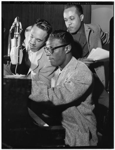 Keywords: (Portrait of Oscar Moore, Nat King Cole, and Wesley Prince, New York, N.Y., ca. July 1946) (LOC) (4931765097).jpg Gottlieb William P 1917- photographer Portrait of Oscar Moore Nat King Cole and Wesley Prince New York N Y ca July 1946 1 negative b w ; 3 1/4 x 4 1/4 in Notes Gottlieb Collection Assignment No 080 Reference print available in Music Division Library of Congress Purchase William P Gottlieb Forms part of William P Gottlieb Collection Library of Congress Subjects Moore Oscar Cole Nat King 1917-1965 Prince Wesley King Cole Trio Jazz musicians--1940-1950 Pianists--1940-1950 Jazz singers--1940-1950 Guitarists--1940-1950 Double bassists--1940-1950 Format Portrait photographs--1940-1950 Group portraits--1940-1950 Film negatives--1940-1950 Rights Info Mr Gottlieb has dedicated these works to the public domain but rights of privacy and publicity may apply http //lcweb2 loc gov/diglib/ihas/html/gottlieb/gottlieb-copyright html lcweb2 loc gov/diglib/ihas/html/gottlieb/gottlieb-copyrig Repository negative Library of Congress Prints Photographs Division Washington D C 20540 USA http //hdl loc gov/loc pnp/pp print hdl loc gov/loc pnp/pp print reference print Library of Congress Music Division Washington D C 20540 USA http //loc gov/rr/perform/ loc gov/rr/perform/ Part Of William P Gottlieb Collection DLC 99-401005 General information about the Gottlieb Collection is available at http //lcweb2 loc gov/diglib/ihas/html/gottlieb/gottlieb-home html lcweb2 loc gov/diglib/ihas/html/gottlieb/gottlieb-home html Persistent URL http //hdl loc gov/loc music/gottlieb 01611 hdl loc gov/loc music/gottlieb 01611 Call Number LC-GLB13- 0161<br/> PD-Gottlieb https //www flickr com/photos/library_of_congress/4931765097/ Portrait of Oscar Moore Nat King Cole and Wesley Prince New York N Y ca July 1946 LOC https //www flickr com/people/8623220 N02 The Library of Congress http //www loc gov/rr/print/195_copr html noknown The Library of Congress Flickr Commons Flickr-no known copyright restrictions The Library of Congress https //flickr com/photos/8623220 N02/4931765097 2015-09-02 00 16 25 pd Photographs by William P Gottlieb |