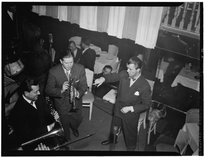 | Keywords: (Portrait of Tony Parenti, Wild Bill Davison, and Eddie Condon, Eddie Condon's, New York, N.Y., ca. June 1946) (LOC) (4932357596).jpg Gottlieb William P 1917- photographer Portrait of Tony Parenti Wild Bill Davison and Eddie Condon Eddie Condon's New York N Y ca June 1946 1 negative b w ; 3 1/4 x 4 1/4 in Notes Gottlieb Collection Assignment No 090 Reference print available in Music Division Library of Congress Purchase William P Gottlieb Forms part of William P Gottlieb Collection Library of Congress Subjects Parenti Tony 1900-1972 Davison Wild Bill 1906- Condon Eddie 1905-1973 Jazz musicians--1940-1950 Guitarists--1940-1950 Clarinetists--1940-1950 Trumpet players--1940-1950 Eddie Condon's Format Portrait photographs--1940-1950 Cityscape photographs--1940-1950 Film negatives--1940-1950 Rights Info Mr Gottlieb has dedicated these works to the public domain but rights of privacy and publicity may apply http //lcweb2 loc gov/diglib/ihas/html/gottlieb/gottlieb-copyright html lcweb2 loc gov/diglib/ihas/html/gottlieb/gottlieb-copyrig Repository negative Library of Congress Prints Photographs Division Washington D C 20540 USA http //hdl loc gov/loc pnp/pp print hdl loc gov/loc pnp/pp print reference print Library of Congress Music Division Washington D C 20540 USA http //loc gov/rr/perform/ loc gov/rr/perform/ Part Of William P Gottlieb Collection DLC 99-401005 General information about the Gottlieb Collection is available at http //lcweb2 loc gov/diglib/ihas/html/gottlieb/gottlieb-home html lcweb2 loc gov/diglib/ihas/html/gottlieb/gottlieb-home html Persistent URL http //hdl loc gov/loc music/gottlieb 01681 hdl loc gov/loc music/gottlieb 01681 Call Number LC-GLB13- 0168<br/> PD-Gottlieb https //www flickr com/photos/library_of_congress/4932357596/ Portrait of Tony Parenti Wild Bill Davison and Eddie Condon Eddie Condon's New York N Y ca June 1946 LOC https //www flickr com/people/8623220 N02 The Library of Congress http //www loc gov/rr/print/195_copr html noknown The Library of Congress Flickr Commons Flickr-no known copyright restrictions The Library of Congress https //flickr com/photos/8623220 N02/4932357596 2015-09-02 00 16 21 pd Photographs by William P Gottlieb |