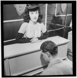 | Keywords: (Portrait of Vivien Garry and Teddy Kaye, Dixon's, New York, N.Y., ca. May 1947) (LOC) (5306377835).jpg Gottlieb William P 1917- photographer Portrait of Vivien Garry and Teddy Kaye Dixon's New York N Y ca May 1947 1 negative b w ; 2 1/4 x 2 1/4 in Notes Gottlieb Collection Assignment No 519 Purchase William P Gottlieb Forms part of William P Gottlieb Collection Library of Congress Subjects Garry Vivien Kaye Teddy Jazz musicians--1940-1950 Women jazz musicians--1940-1950 Double bassists--1940-1950 Pianists--1940-1950 Dixon's Format Portrait photographs--1940-1950 Cityscape photographs--1940-1950 Film negatives--1940-1950 Rights Info Mr Gottlieb has dedicated these works to the public domain but rights of privacy and publicity may apply http //lcweb2 loc gov/diglib/ihas/html/gottlieb/gottlieb-copyright html lcweb2 loc gov/diglib/ihas/html/gottlieb/gottlieb-copyrig Repository negative Library of Congress Prints Photographs Division Washington D C 20540 USA http //hdl loc gov/loc pnp/pp print hdl loc gov/loc pnp/pp print Part Of William P Gottlieb Collection DLC 99-401005 General information about the Gottlieb Collection is available at http //lcweb2 loc gov/diglib/ihas/html/gottlieb/gottlieb-home html lcweb2 loc gov/diglib/ihas/html/gottlieb/gottlieb-home html Persistent URL http //hdl loc gov/loc music/gottlieb 11811 hdl loc gov/loc music/gottlieb 11811 Call Number LC-GLB23- 1181<br/> PD-Gottlieb https //www flickr com/photos/library_of_congress/5306377835/ Portrait of Vivien Garry and Teddy Kaye Dixon's New York N Y ca May 1947 LOC https //www flickr com/people/8623220 N02 The Library of Congress http //www loc gov/rr/print/195_copr html noknown The Library of Congress Flickr Commons Flickr-no known copyright restrictions The Library of Congress https //flickr com/photos/8623220 N02/5306377835 2015-09-02 00 08 20 pd Photographs by William P Gottlieb |