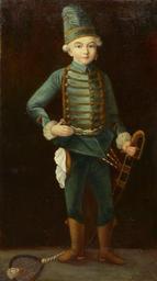 Keywords: Porträt eines Jungen in Husarenuniform.jpg century 19 Oil on canvas cm 121 71 Institution http //www fischerauktionen ch/ other versions PD-old-100 Works by Friedrich August von Kaulbach 19th-century portrait paintings location missing 1899< Portraits of unknown children 19th-century portrait paintings not categorised by year Male 19th-century oil on canvas paintings 19th-century oil portraits of boys at full length 1899< Badminton in art Blue clothing in art male Children with fur in art Children with military uniforms Frogs fasteners Male boots in portrait paintings 1899< Paintings by Friedrich August von Kaulbach with fur Portrait paintings of men holding swords 1899< Portrait paintings of standing boys Portrait paintings with sports equipment 1899< Portraits of hussars 1899< Portraits wearing caps 1899< Right hand on hip in portrait paintings 1899< |