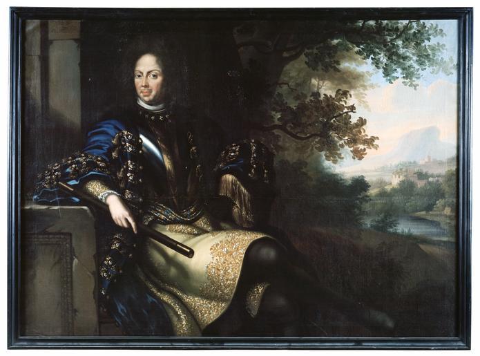 Keywords: Porträtt. Nils Bielke. Klöcker Ehrenstrahl - Skoklosters slott - 30894.tif Nils Bielke greve fältmarskalk 1644-1716 plain text Helfigur sittande fas huvudet vänster kroppen höger <br/>Bröstharnesk guldstickat gult kyller guldstickad blå rock <br/>Allongeperuk Lutad med vänstra armbågen mot en balustrad det vänstra benet över det högra I vänster hand kommandostav Landskap i bakgrunden <br/>Kilad spännram <br/>Svart profilerad ram påsatt efter 1845 Ramlistens bredd 50 mm original caption Porträtt Nils Bielke Klöcker Ehrenstrahl - 1660 1716 oil on canvas size mm 1893 1380 SKO Skoklosters slott Museum Dröm och verklighet - Orienten på Skokloster 2001 Skoklosters slott place of origin original filename sm_t10460_3131 24457 inventory number SKO 3131 30894 PD Samuel Uhrdin Samuel Uhrdin Portrait paintings Media contributed by LSH unmatched creator Media contributed by LSH 2013-10 |